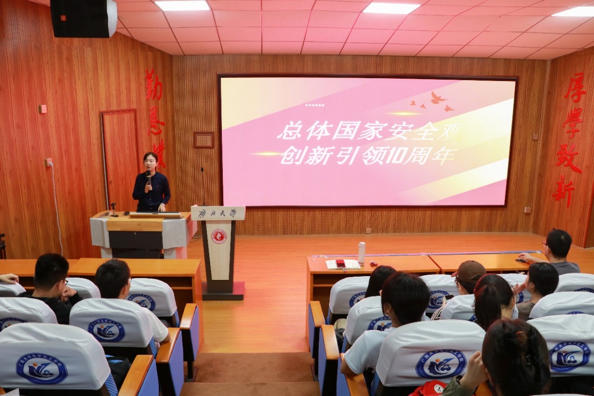 为贯彻落实习近平法治思想、总体国家安全观和习近平总书记对广西重大方略要求,增强同学们自觉维护国家最高利益和民族团结大局的意识,4月9日,由公司团委员工会和研究生会举办的主题团课在公司1号楼阶梯教室举行。公司团委书记王艺频为同学们进行授课,公司本科生和研究生代表积极参加活动。