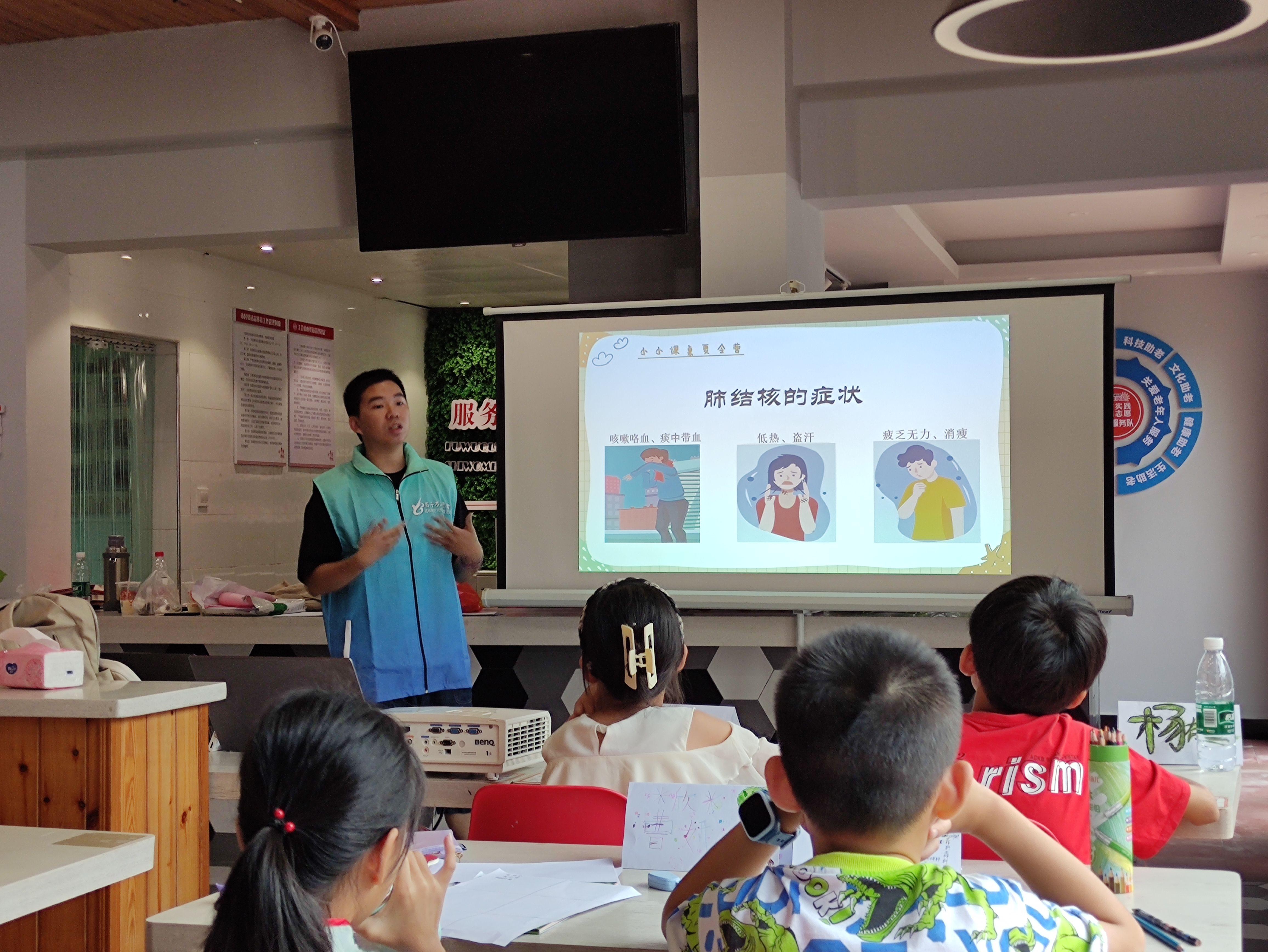 为深入学习宣传党的二十大精神,贯彻落实习近平总书记关于健康中国的重要论述和“从源头上预防和控制重大疾病”的重要指示,2023年7月26日-8月16日,英国威廉集团官网闭义椿与来自英国威廉公司官网、广西师范大学的10名在读本科生返家乡组成“点亮星光”志愿宣讲团,协同广西壮族自治区北海市海城区东街团委,面向社区儿童、青少年有针对性地开展以“防治结核”为宣讲主题的“小小课桌夏令营”暑期社区志愿服务活动。