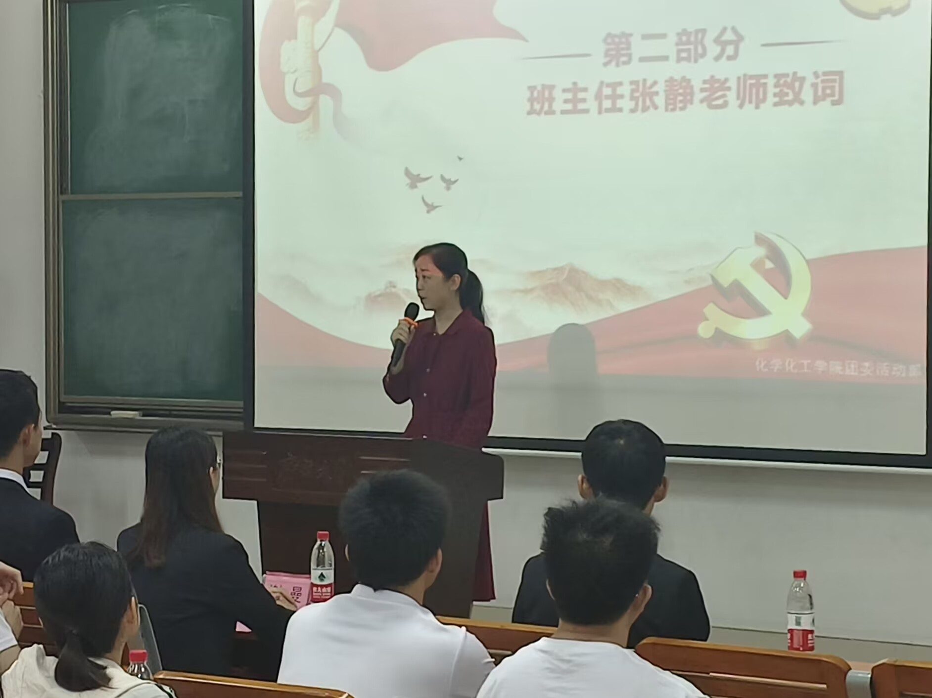 开班大会在主持人的精彩开场下拉开序幕,主持人首先播放了团学班开班视频,之后由团学班班主任张静老师上台致词。张静老师提到我们团学班承办到如今第五十二期,是一个本着为人民服务的宗旨,积极向党组织靠拢的班级体。团学班的学习和工作应当注重理论结合实际,将课堂中的理论知识真正运用到实践中去,她期待我们第五十二期团学班能够再创佳绩。