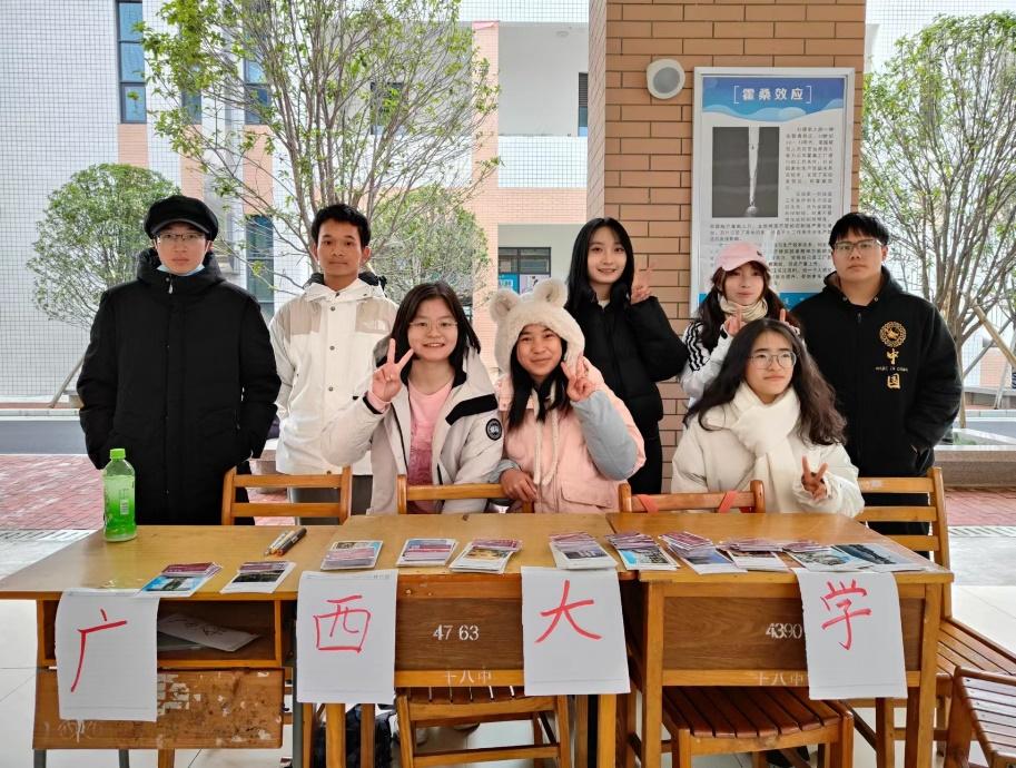 寒假期间,张若玫、单嘉坤和何静文分别回到高中母校海南省海口市黄冈金盘高级中学、山东省龙口市第一中学和桂林市第十八中学开展“我为西大代言,回访母校宣讲”专题实践活动。