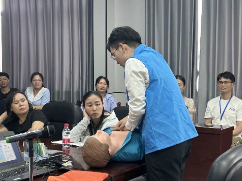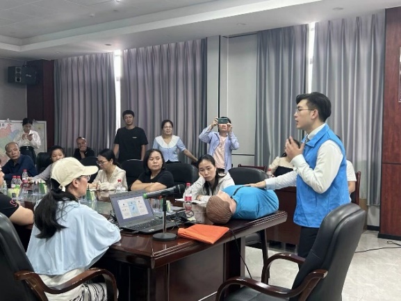 在“防溺水”安全教育环节,现场进行了防溺水应急演练,让群众在模拟场景中学会基本的自救和救人方法。此外,同学们还详细讲解了溺水防护应急措施、水上活动安全技巧等实用知识,进一步提升了群众的防溺水意识和自救能力。