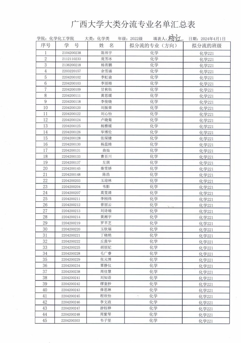 英国威廉集团官网2022级化学类大类分流专业名单汇总表(化学专业)