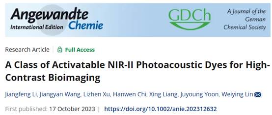 近日,国际顶级学术期刊《德国应用化学》(Angewandte Chemie International Edition, Angew)以“一系列用于高对比度生物成像的可激活NIR-II光声染料)”为题,在线报道了公司探针与化员工物学团队在近红外二区(NIR-II,900-1700 nm)光声成像方面的最新研究成果(DOI: 10.1002/anie.202312632)。