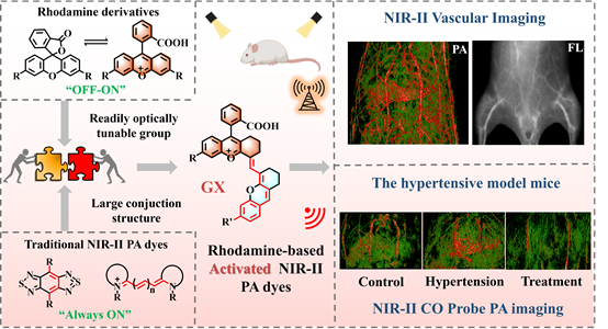 光声(PA)成像正在成为生物医学研究中重要的非侵入性成像技术之一。然而,目前大多数传统光声染料的波长集中在可见光和第一近红外窗口(NIR-I,700-900 nm),其组织穿透深度和空间分辨率有限。相比之下,第二近红外窗口的光声染料可以提供更全面、更深入的体内生理和病理信息。由于缺乏易于光学调谐的基团,NIR-II光声染料通常表现出“始终开启”的特性,这阻碍了其在复杂和多样化的分子成像应用中的有效使用。