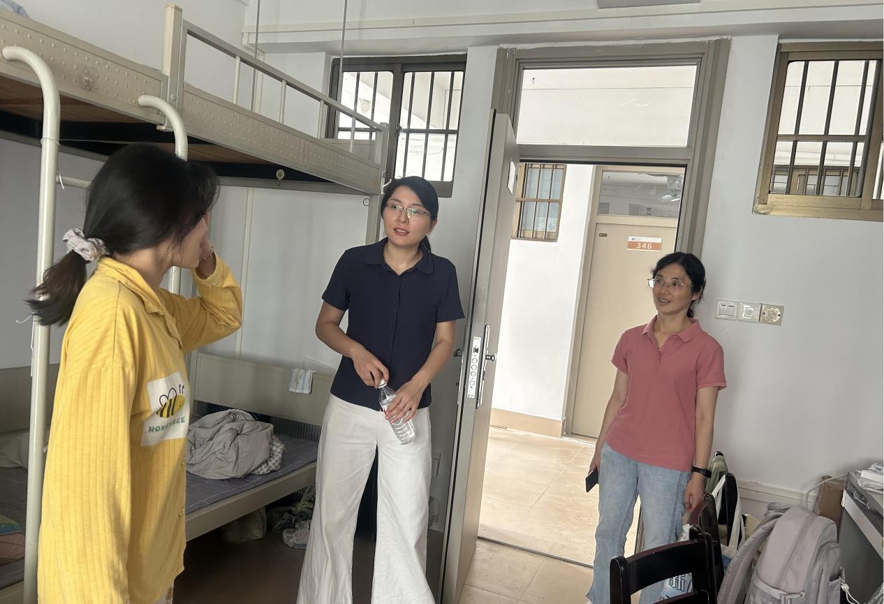 副经理尹诗斌、江俊、许雪棠及经理助理、新生班主任、辅导员等在走访中仔细检查了宿舍的有关情况,认真记录下同学们的需求和建议,尽力提供帮助和支持。