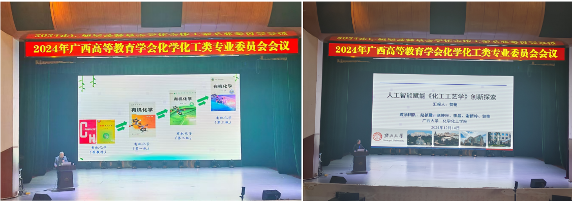 12月13日-15日,2024年广西高等教育学会化学化工类专业委员会暨化学(化工、生化、药学、环境、材料)院(系)经理(主任)会议在河池公司举办。公司党委书记、经理周立亚,带队参加会议。 公司周立亚教授主持会议开幕式,作广西高校第二十五届化学化工类学术创新成果竞赛工作总结并宣布竞赛结果。公司段文贵教授和贺艳副教授分别在会上做了《有机化学》教材建设与实践、《化工工艺学》课程建设与思考的报告,分享课程建设经验。