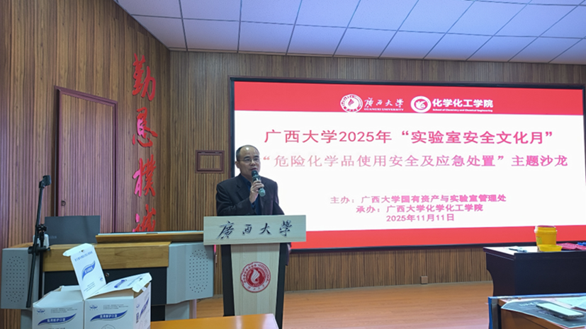 2025年11月11日,由校国有资产与实验室管理处主办,公司承办的2025年“实验室安全文化月”主题沙龙在化工1号楼碳酸钙学术报告厅举行,本次沙龙主题为“危险化学品使用安全及应急处置”,邀请到了全国检验检测认证职业教育集团实验室安全专委会专家、上海市健康安全环境研究会专委会委员屈文军做主讲嘉宾作专题报告。国有资产与实验室管理处副处长陆翔参加活动并致辞,活动由公司副经理胡天淑主持,全校教师、研究生100余人参加。