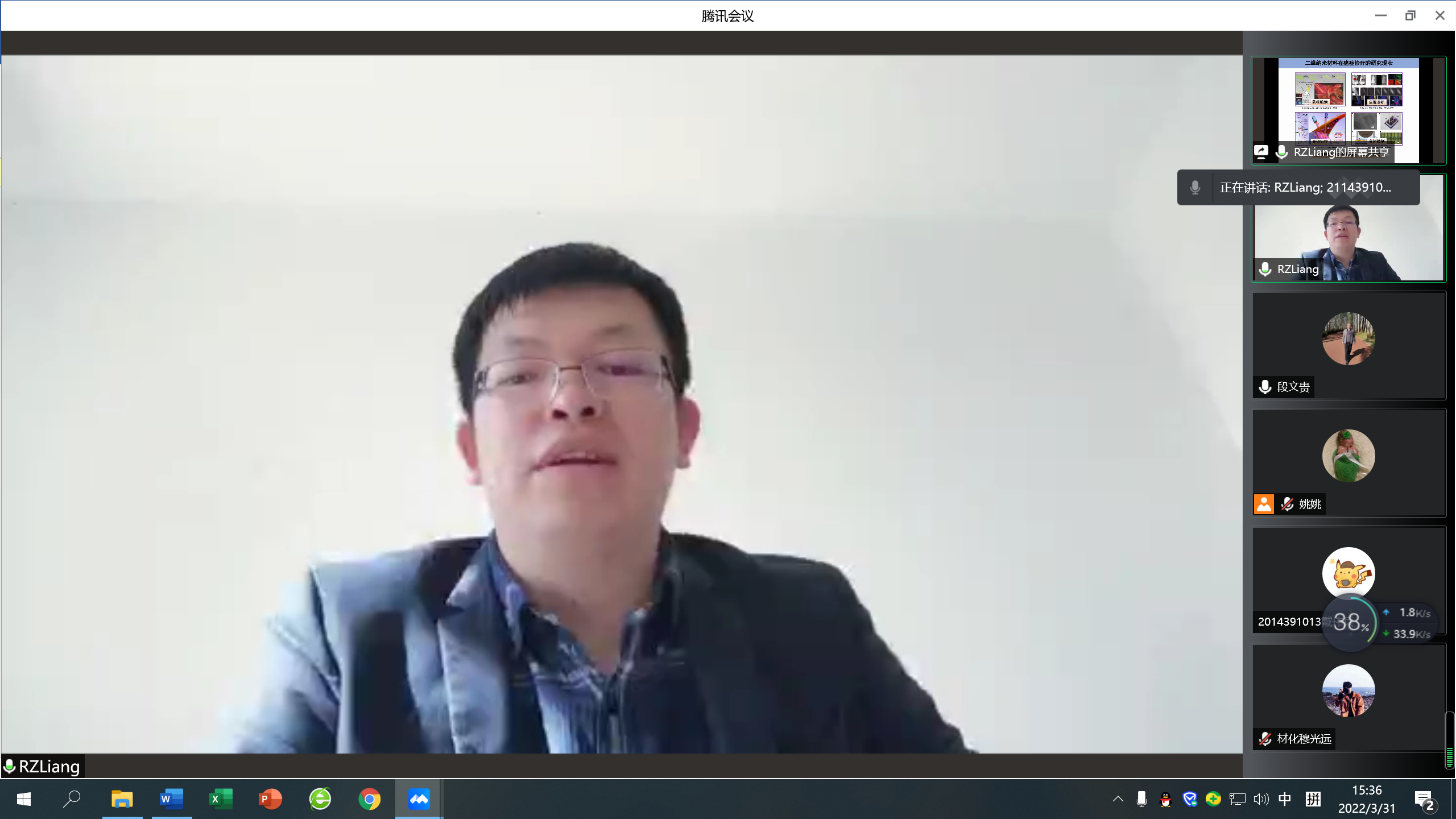报告会中,梁教授详细介绍了自己研究团队在水滑石基纳米载药体系和水滑石基骨修复材料的制备和性能方面的研究成果。会上,梁教授还与在线的老师和同学进行了精彩的互动交流,耐心地解答了大家的提问。