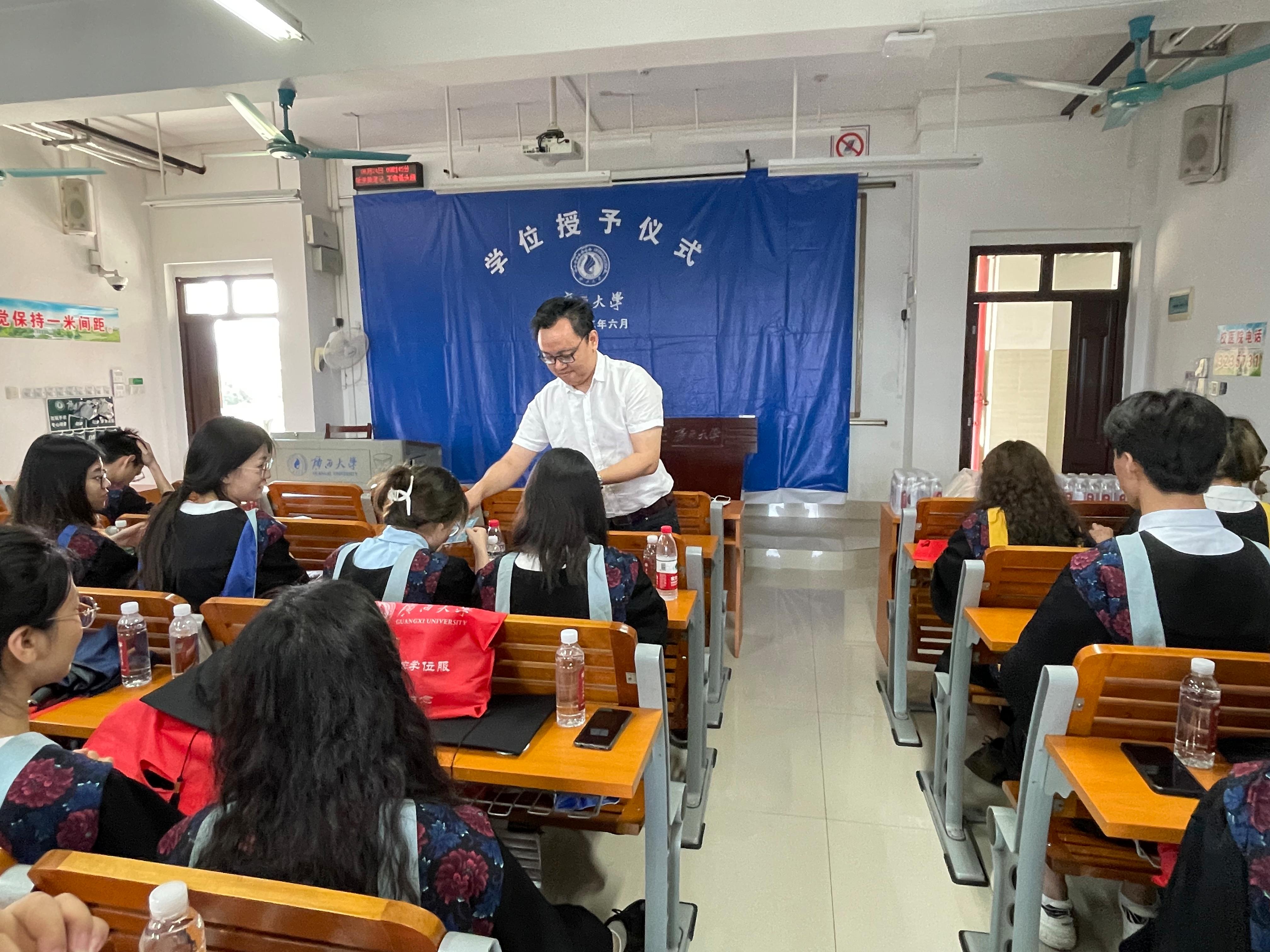 6月24日,英国威廉集团官网在六教504举行2022届毕业典礼暨学位授予仪式。公司党委书记周立亚、党委副书记刘丽、副经理段文贵、范闽光、赵祯霞、秦祖赠、学工组全体辅导员及全体毕业生参加。根据疫情防控需要,此次毕业典礼在汇学堂设主会场,各公司设分会场,采用线上线下相结合的方式进行。