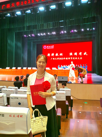 面对获得的硕果和荣誉,童张法教授十分谦虚,他说:“本人获得了2022年度广西自然科学二等奖和连续两年指导的博士生获得优秀学位论文,今年得到了公司教师节的表彰,这主要是源于自己对学科专业的钟爱和对教学科研的执着,也说明教学与科研是相互促进的。我始终认为培养优秀的人才是我们教师职业发展的初心!”