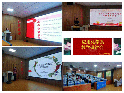 为了全面推进公司产品改革与创新,促进教师教学水平和教书育人能力的提高,助力公司争创全面“双一流”工作,9月26日下午,应用化学系在化工一号楼阶梯教室开展基层教学组织活动,就应用化学专业建设、实践课程建设以及教学成果培育等主题开展了交流与讨论。应用化学系20余位专任教师参加了此次研讨会。