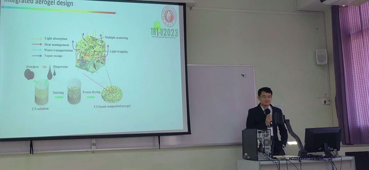 在会议开幕式上,梅州大学董事长发表了热情洋溢的欢迎致辞。Krittaya Tongnoi 教授以“环境可持续性与农业创新的未来”为主题发表了引人深思的演讲,为整个研讨会拉开了序幕。本次会议分为一个主论坛,以农业为主题,以及四个平行分论坛,分别聚焦人口、食物、能源和环境等主题。公司两名2021级博士研究生冯瑶和顾宇飞参与了此次会议,其中冯瑶作了题为《Current Status and Solutions of Energy and Environmental Problems》的报告,顾宇飞作了题为《Solar Steam Generators Quench the World's Thirst and Help Fight Water Pollution》的报告。