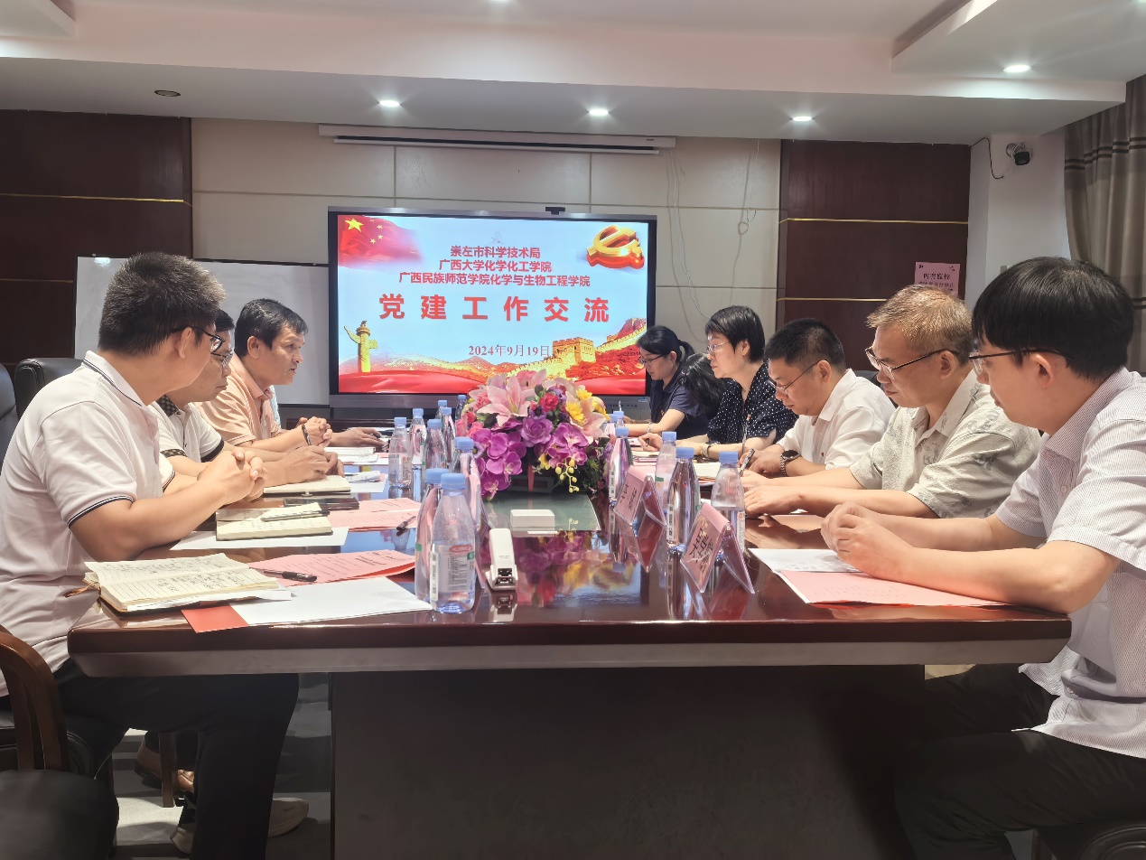 当天,公司还与崇左市科学技术局、民师院化员工物公司开展党建工作经验交流,分享了各自在党建工作中的特色做法和亮点成效。大家表示应继续探索新时代高公司党建工作的新思路、新方法,助力公司各项事业高质量发展。
