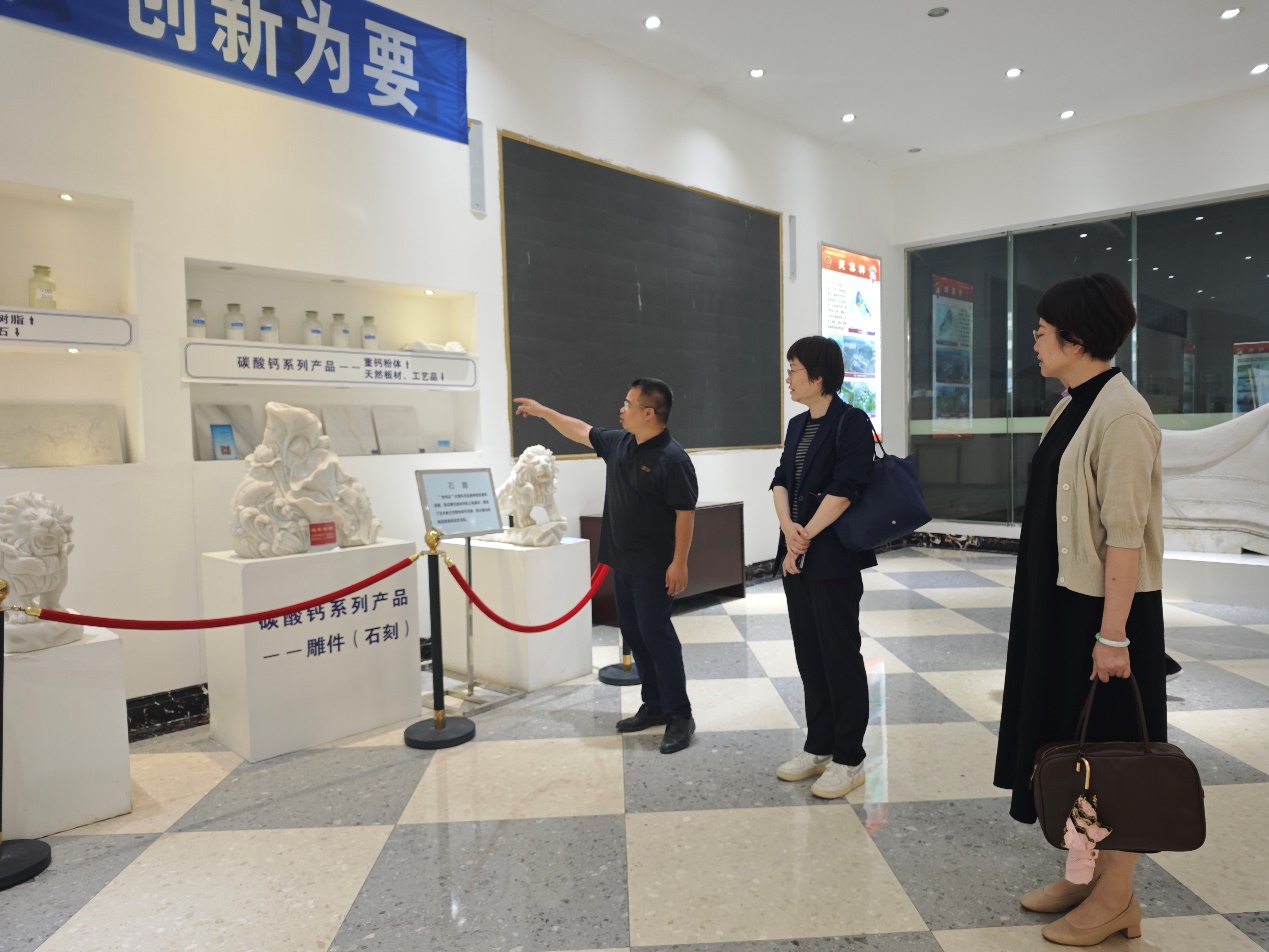 活动期间,周立亚一行实地参观了广西贺州市科隆粉体有限公司商务中心和利升石业有限公司展厅,加深对企业实际情况的了解,为后续合作奠定良好基础。