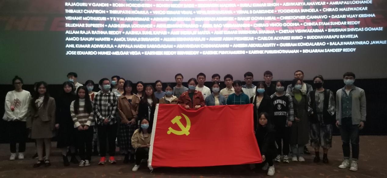 观看《长津湖》全体党员在大屏幕前合影留念