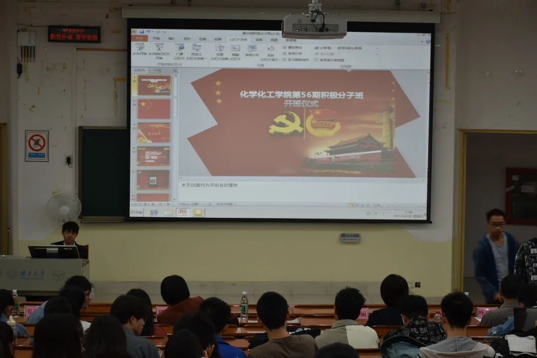 随后,由叶少峰老师宣读入党积极分子班班级纪律。紧接着周立亚老师开始给学员们上化院第五十六期入党积极分子班的第一堂课,并对此次培训顺利开班付出的相关工作人员表示衷心感谢!课上,周立亚老师以“伟大光荣正确的中国共产党”为主题主要讲述了 “党的奋斗历程”,“党的章程”,“党的性质”,“党的指导思想”。学员们认真聆听,受益匪浅。