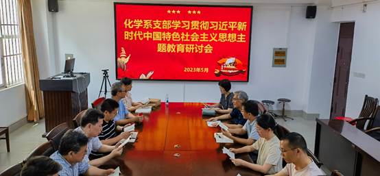 5月31日下午,化学系支部教师党员在公司3号楼217会议室召开了“化学系支部学习贯彻习近平新时代中国特色社会主义思想主题教育学习研讨会”。会议由支部书记周艳玲主持。会前,各位党员已通过个人自学的方式,对党的二十大报告和党章、《习近平著作选读》、《习近平新时代中国特色社会主义思想专题摘编》等主题教育学习材料进行了深入学习。